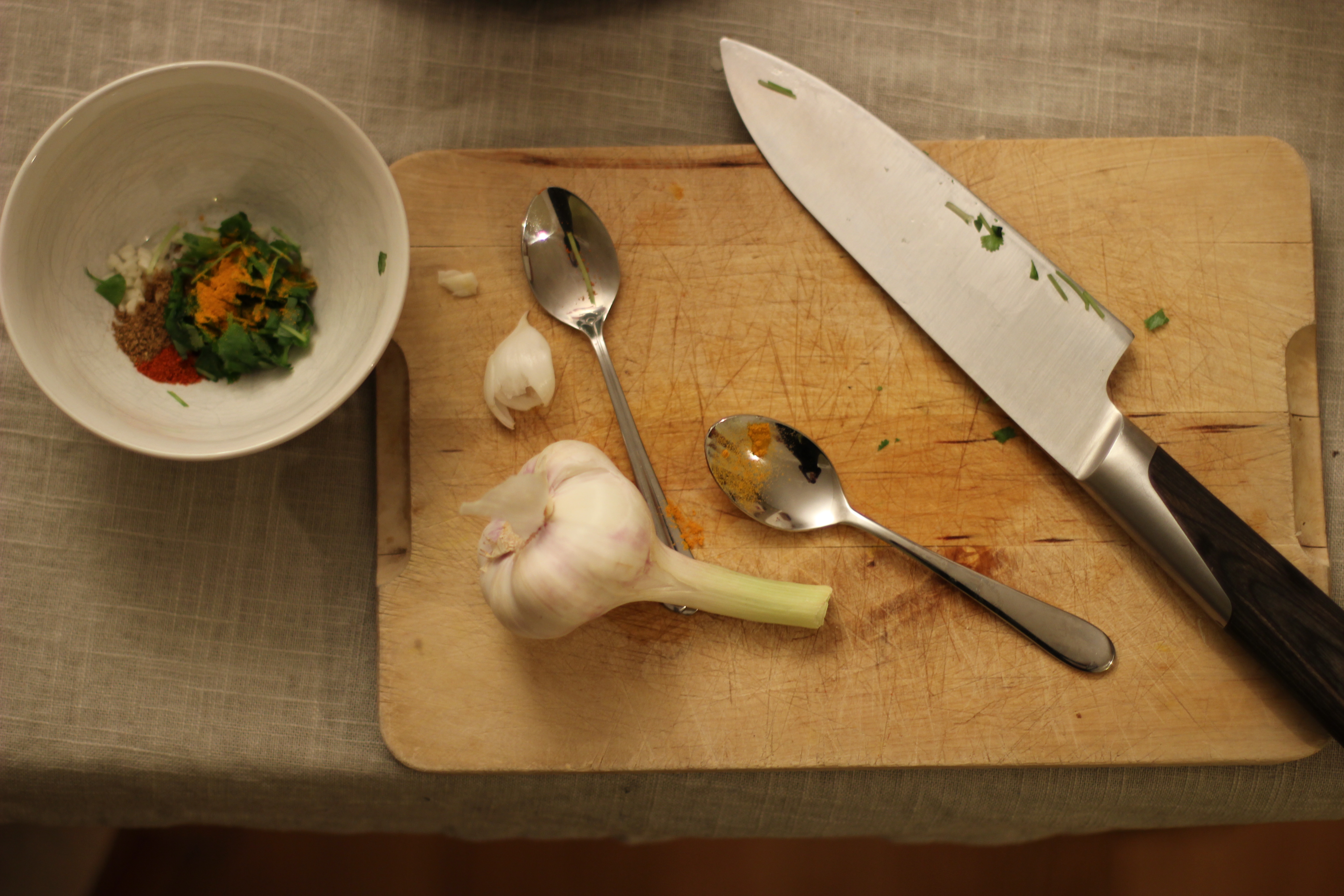 Bare så det er sagt med en gang – dette blogginnlegget er skrevet like mye rettet mot undertegnede som mot bloggens lesere. Når det er mange operasjoner som skal gjøres, grønnsaker som skal skrelles og kuttes, kjøtt som skal skjæres i biter og ting som skal steke og koke er det ikke så mye som skal til før det blir kaos på kjøkkenet – og plutselig blir det vanskelig å finne plass til et nytt skjærebrett, eller man lurer på hvor i all verden hvitløken ble av? Kanskje man har begynt å steke løken og så plutselig kommer på at man trenger hakket persille, og så løper man i skytteltrafikk for at ting ikke skal brenne seg samtidig som man kutter opp persillen? Så jeg tenkte jeg skulle videreformidle noen tips fra Masterchef-dommer Tom Victor Gausdal om hvordan man jobber mer ryddig.