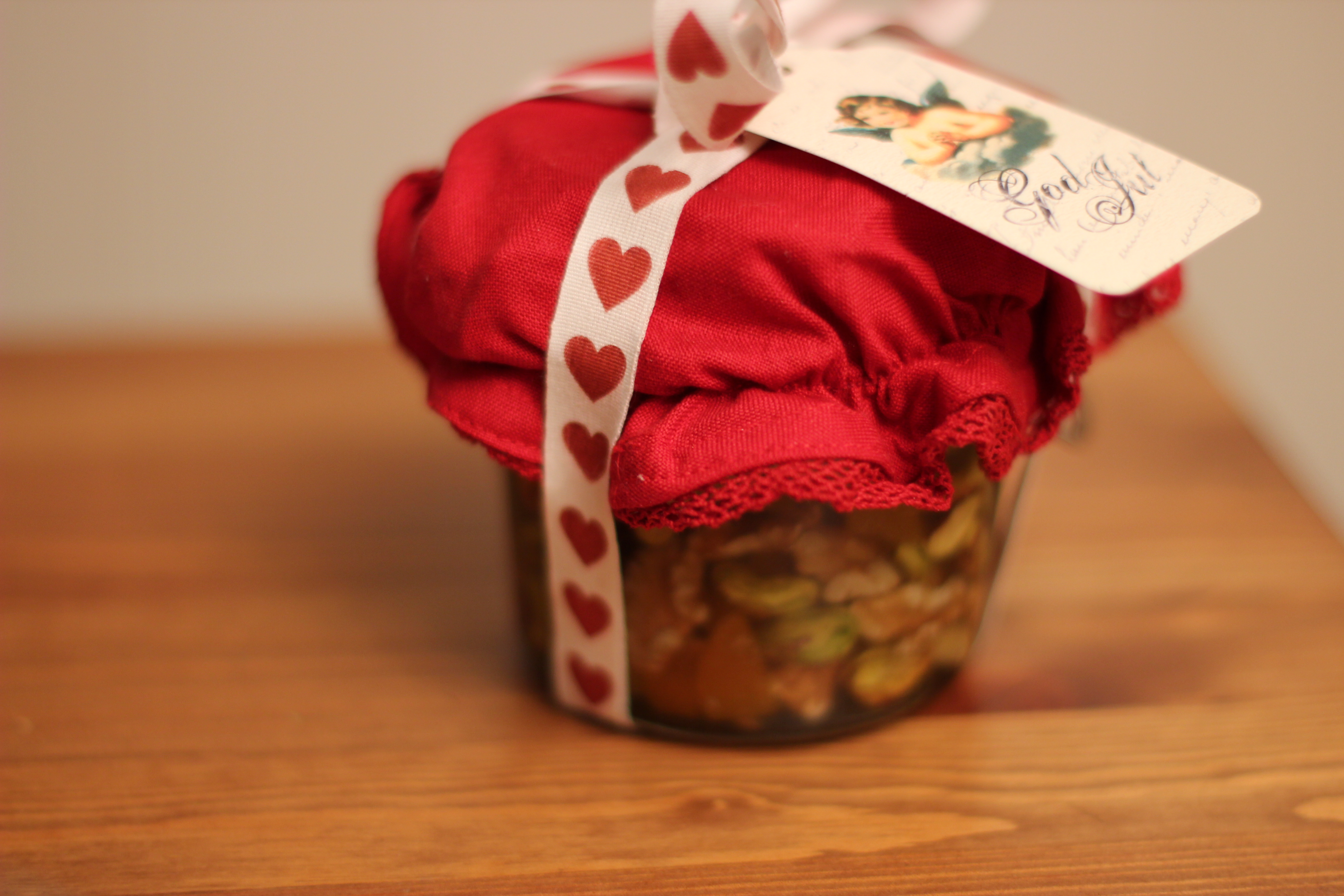 3) Hvis du skal gi dette som matgave blander du ingrediensene i et lukkbart glass, eks syltetøyglass. Dekorer slik du vil, skriv et koselig kort og gi i gave.