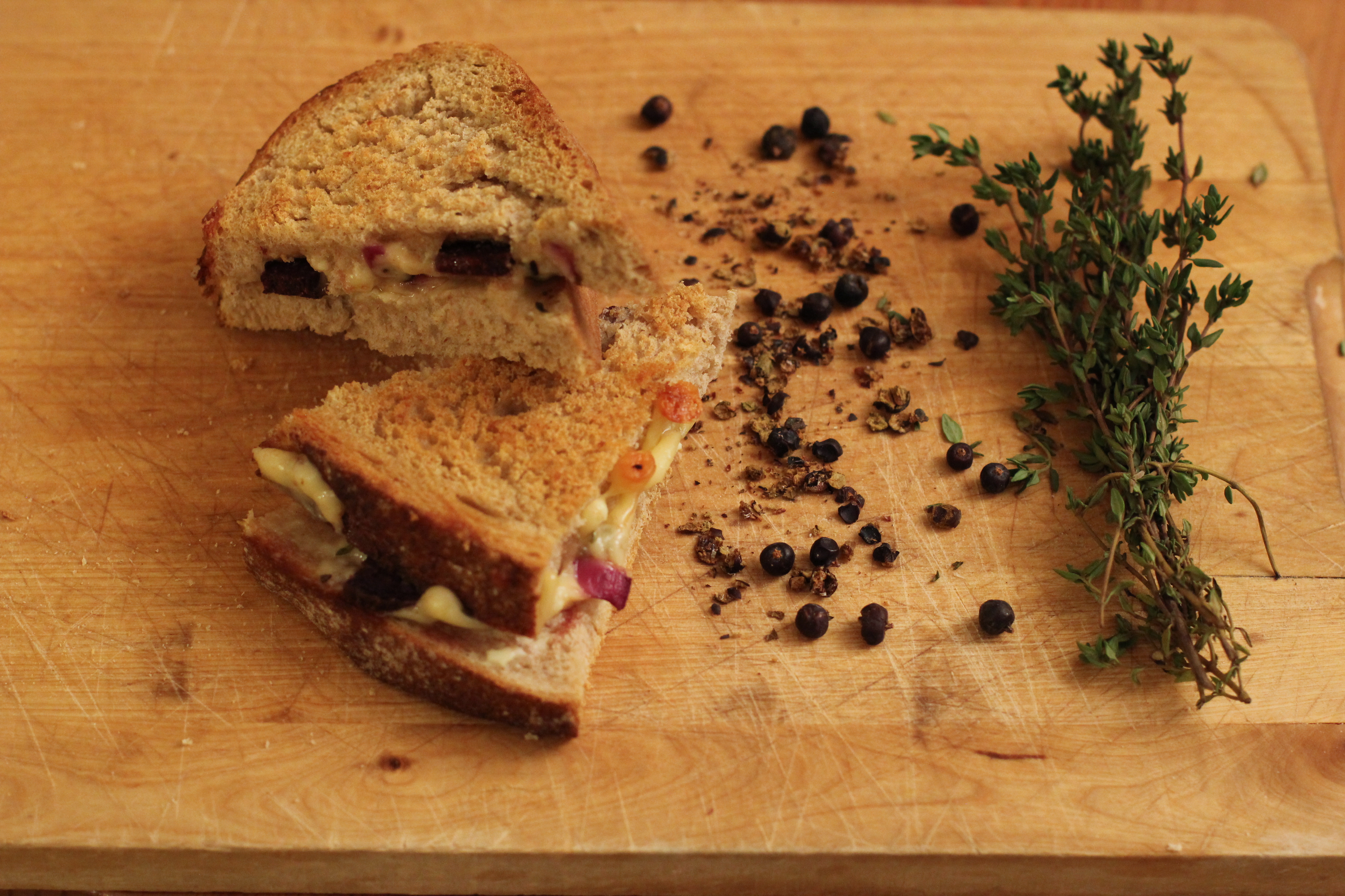 Dette ostesmørbrødet ble en av vinnerne av Norvegias ostesmørbrødkonkurranse, og Norvegias mat-team har laget den på nytt, justert fremgangsmåten og stylet den, se her for deres versjon.