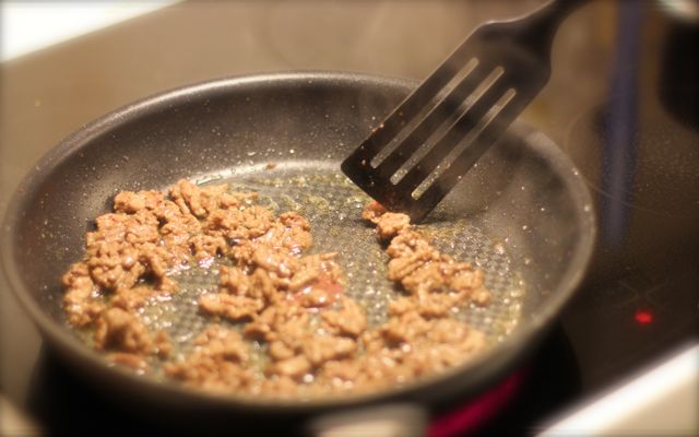 2) Ikke stek for mye kjøttdeig om gangen, stek i to eller tre omganger.