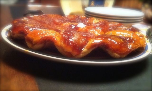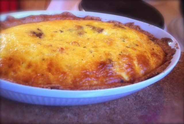 Etter jeg hadde laget Tarte Tatin, hadde jeg en del paideig igjen, og valgte å lage en frokostpai av den (se bilde over). Selv om paideigen er litt søt, fungerte det veldig greit. Jeg lagde denne frokostpaien uten å måle opp ingrediensene, og brukte en liten paiform, under halve størrelsen av en vanlig. Jeg har prøvd å huske sånn cirka hvor mye jeg hadde av hver ingrediens, og økt opp noe for å treffe på en vanlig paiform, men her er det bare å eksperimentere.