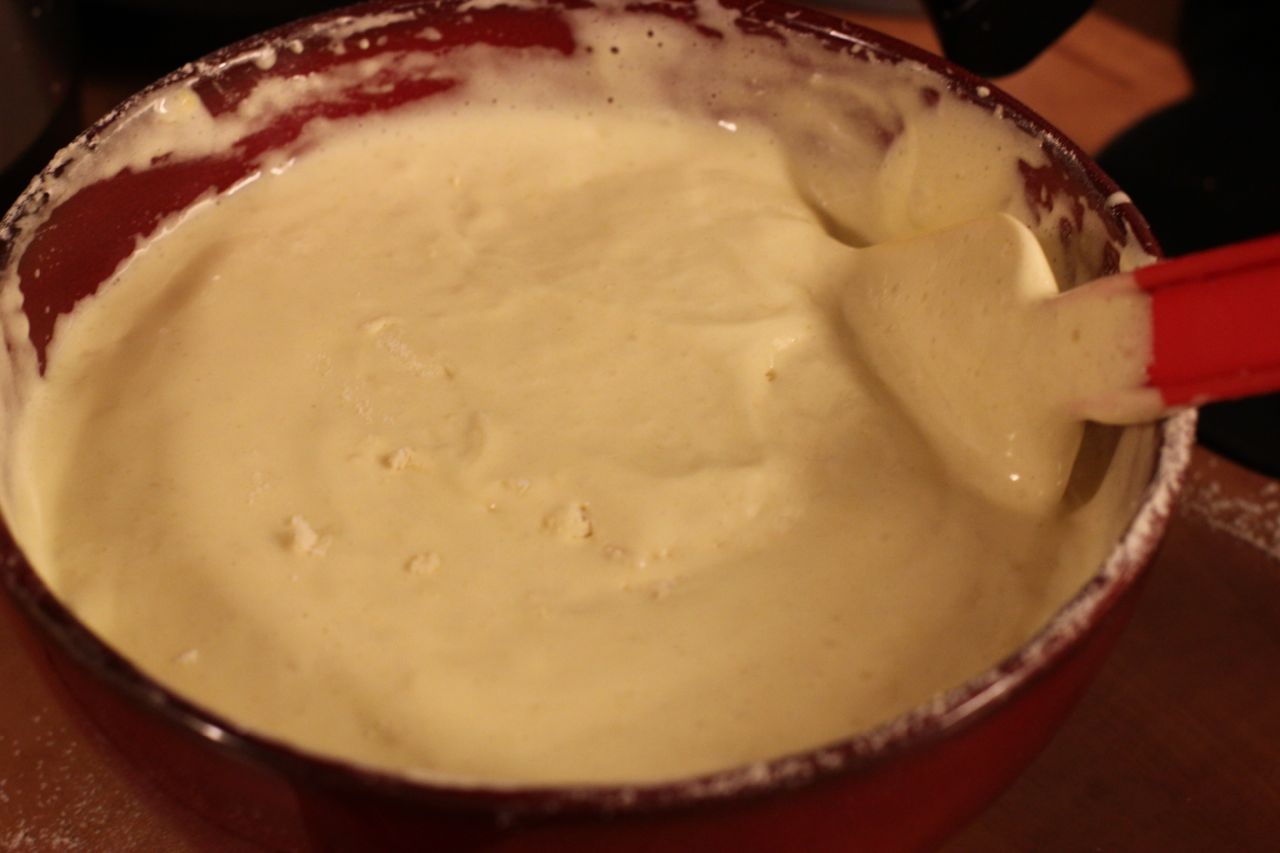 Denne kaken tar under en halvtime å lage, så den kan jo være et greit alternativ hvis du vil ha en rask dessert eller et alternativ til kake? Husk at egg og sukker skal vispes til eggedosis. For å finne en lur tommelfingelregel for når eggene var blitt til eggedosis gjorde jeg litt kjapp research. Det skulle vise seg at det 900 siders store «Matleksikon» ikke ga noen tips til når «eggedosis» var ferdig (eller hvordan det blir laget), det gjorde heller ikke Espelids rutete kokebok (!) Men jeg fant det til slutt – er det noen av dere som har boken «Fra boller til burritos»? Den forklarer eggedosistrikset på følgende måte: «Når du kan skrive «Ole» med eggedosis som renner ned fra vispene, slik at o-en står igjen når e-en er ferdigskrevet, er eggedosisen passe stiv.» Så da fikk vi repetert det.
