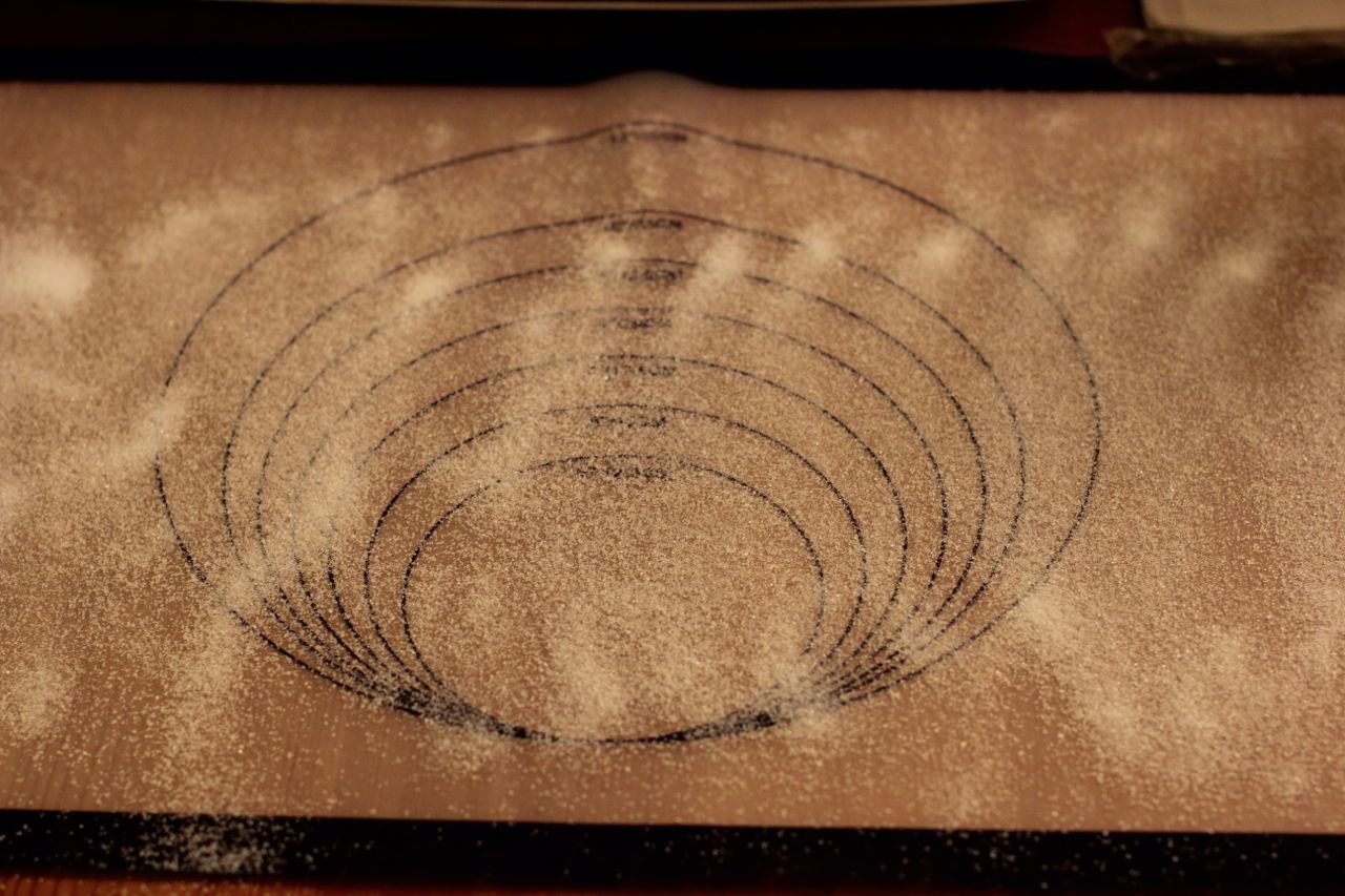 8) Legg et bakepapir eller lignende på kjøkkenbenken og strø på et tynt lag med sukker. Hvelv sukkerbrødet på papiret slik at undersiden vender opp (slik blir den fine, brune siden ytterst og dekket med sukker).