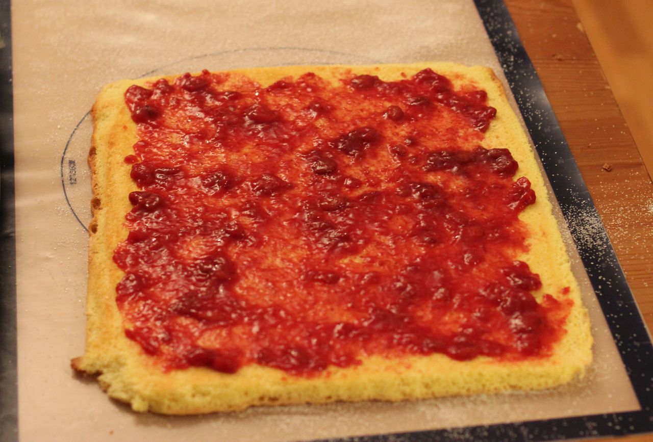 9)Smør kaken med syltetøy