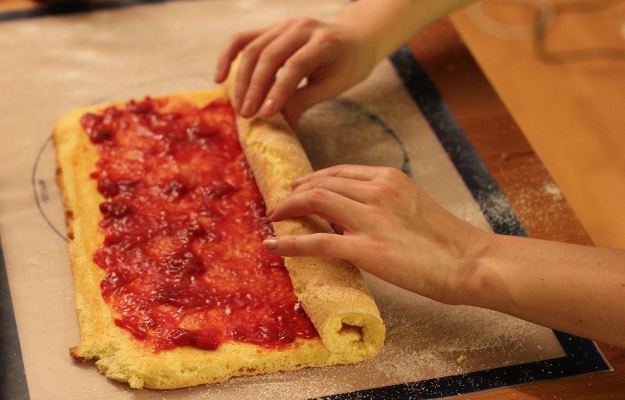 10) Rull kaken sammen fra langsiden.