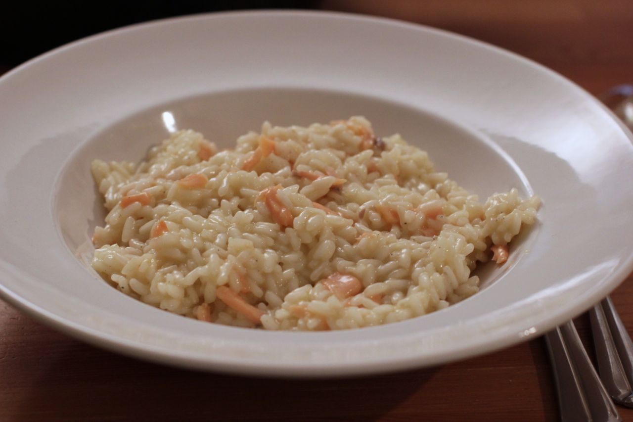 Du vet hvordan du har noen kokebøker som støver vekk i hyllen? Vel, min nyeste kokebok, som jeg fikk i gave nylig, vil definitivt ikke støve vekk. Sølvskjeen er Italias mest solgte og brukte kokebok, med sine mer enn 2000 oppskrifter. Den er nå kommet i norsk utgave/oversettelse. Pedagogisk, grundig og omfattende er førsteinntrykket. Første oppskrift jeg har prøvd er denne risottoen, som på italiensk heter «Risotto alla salsa di salmone e spumante». Risottoen viste seg å være smekkfull på smak og jeg gleder meg til å prøve flere oppskrifter fra boken, spesielt hvis de holder dette nivået og er så enkle.