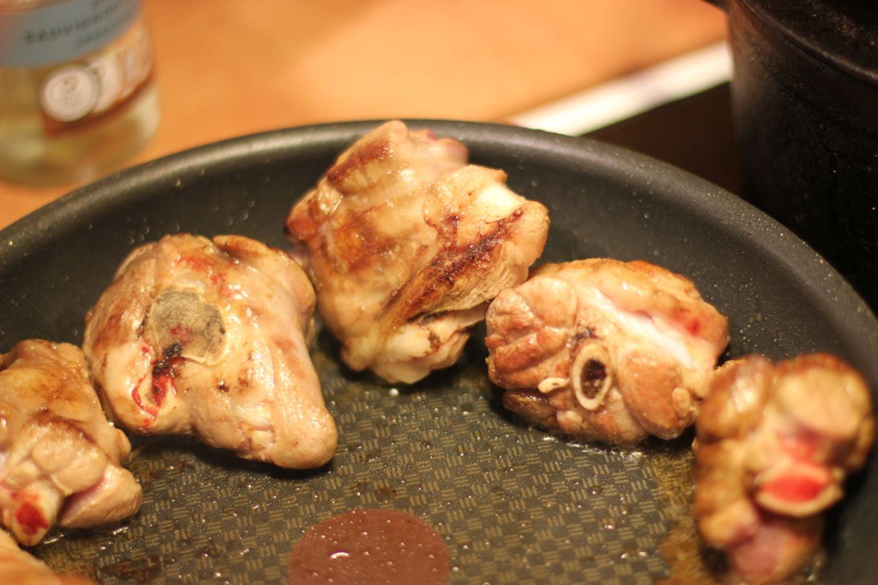 Dette er en tilberedningsmåte som langt på vei er den samme som i den franske rødvinsgryteretten Boeuf Bourgognon, bortsett fra at Osso Bucco-oppskriften er noe enklere. I Osso Bucco tilsettes tomater, noe som gir fylde til sausen, og man trenger ikke å sile kraften og tykne den slik man gjør når man lager Boeuf Bourgognon. Når jeg skulle lage Osso Bucco var min plan å kombinere to Osso Bucco-oppskrifter, dvs. en oppskrift fra den italienske kokeboken Sølvskjeen og en fra boken Helt Chef av Christer Berens og Rune Pal. Planen min ble imidlertid noe endret i løpet av turen til slakteren, ettersom lam jo er på sesong, og det lå ferske lammeskanker på rekke og rad i slakterdisken. Jeg fikk slakteren til å skjære opp 2 kg lammeskanker i cirka fem cm store biter, slik at de var klare til steking.