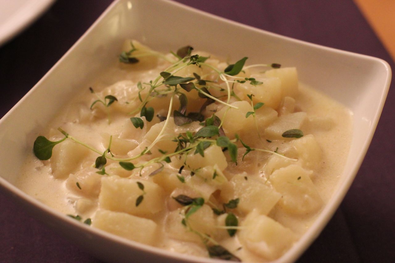 Potetstuing er et godt alternativ til kokte poteter og tar bare en halvtime å lage. Hvis du smakssetter de stuede potetene med litt ekstra smak, trenger du strengt tatt ikke saus heller. De kan for eksempel servere potetstuing til et stykke stekt kjøtt, kokt salt kjøtt, eller slik som vi gjorde i dag – som garnityr til helstekt kylling.