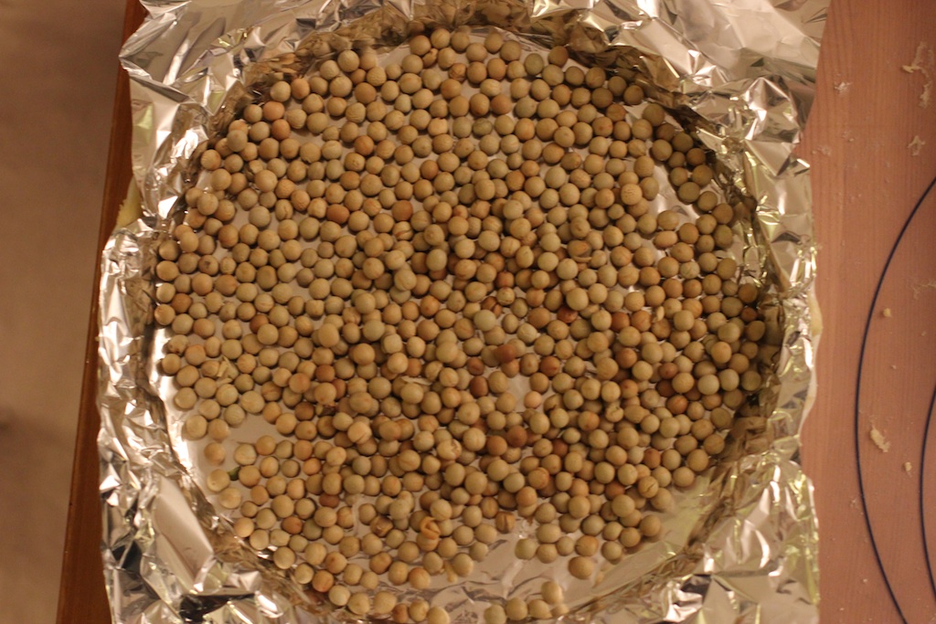 For at paideigen skal bli godt nok stekt, bør den forstekes. Jeg pleier å bruke tørkede erter i paideigen, men disse kan brukes om igjen og om igjen i det uendelige. Jeg pleier å oppbevare dem i et glass mellom hver gang.