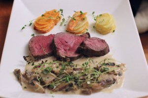 Elgfilet med soppstuing og Pommes Anna