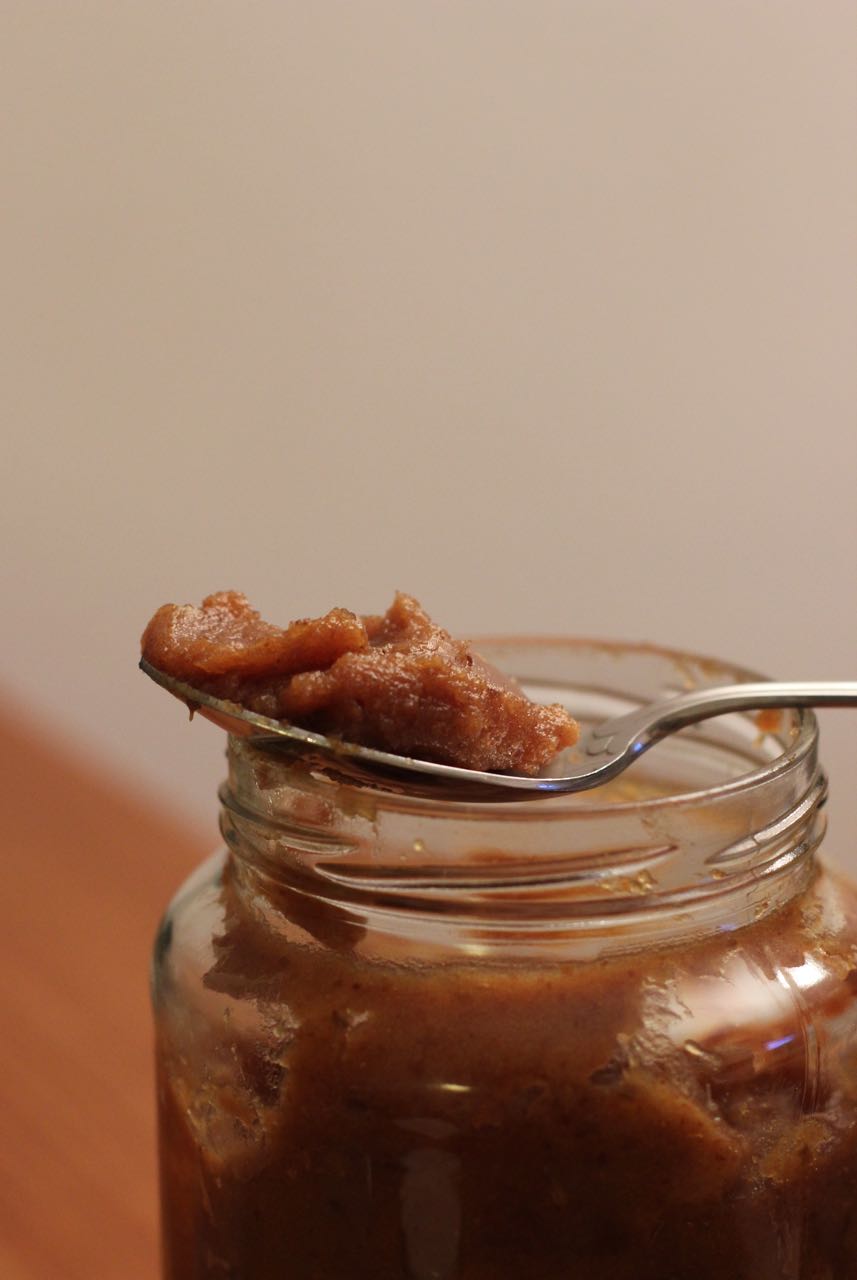 3) Ta daddelpasten over på et glass (gjerne sterilisert slik at pasten holder seg lenge. For å sterilisere glasset dypper du innsiden og utsiden av glasset i kokende vann.)