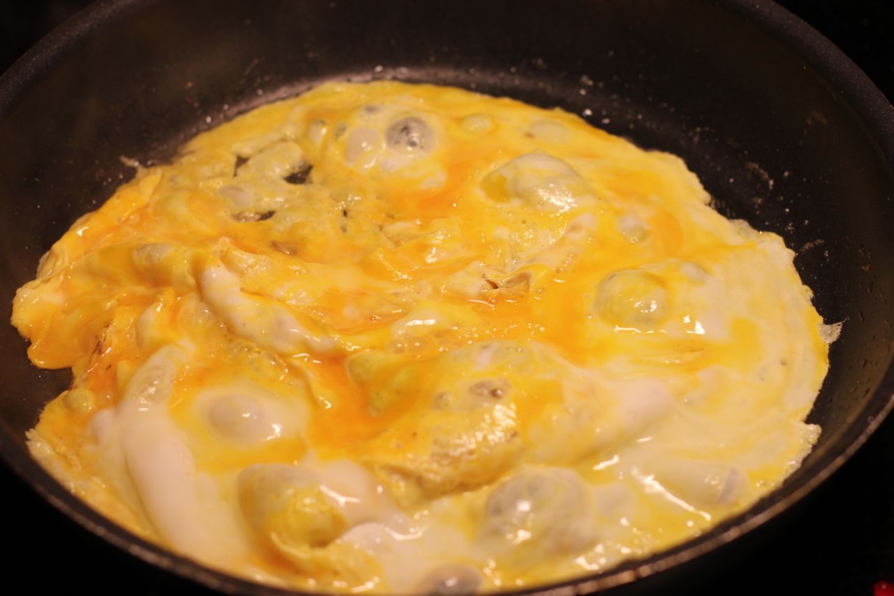 3. Eggeblandingen vil begynne å boble med en gang. Vent i 5-10 sekunder. Du vil se at eggeblandingen fortsatt er flytende på toppen.