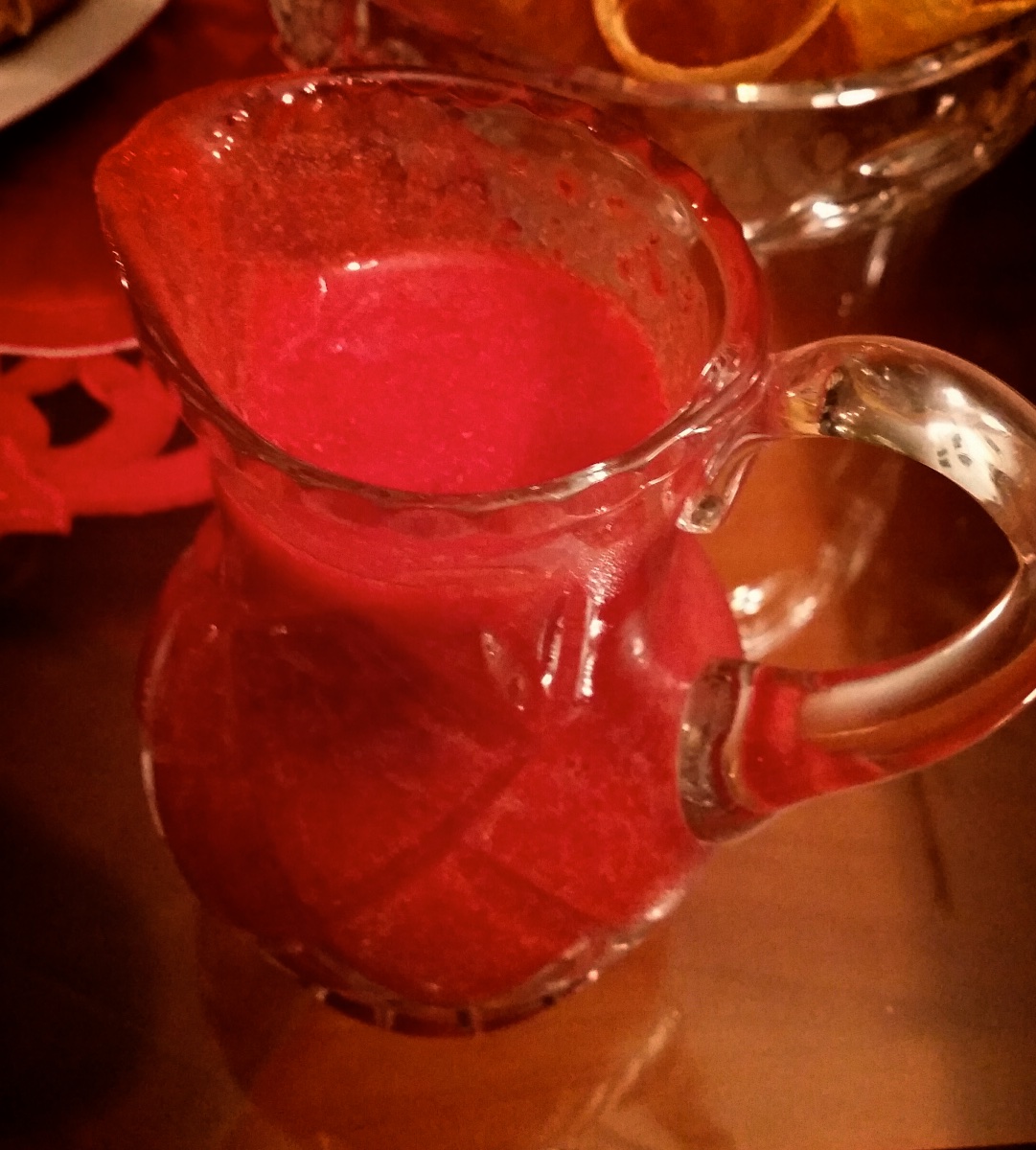 Riskrem og jordbærsaus tilsmakt med julebrus